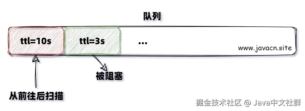 - 先进先出的队列特性:队列中的消息必须按顺序处理,即使后面的消息 TTL 较短且已过期,也必须等待队头的消息先被处理(或过期)。