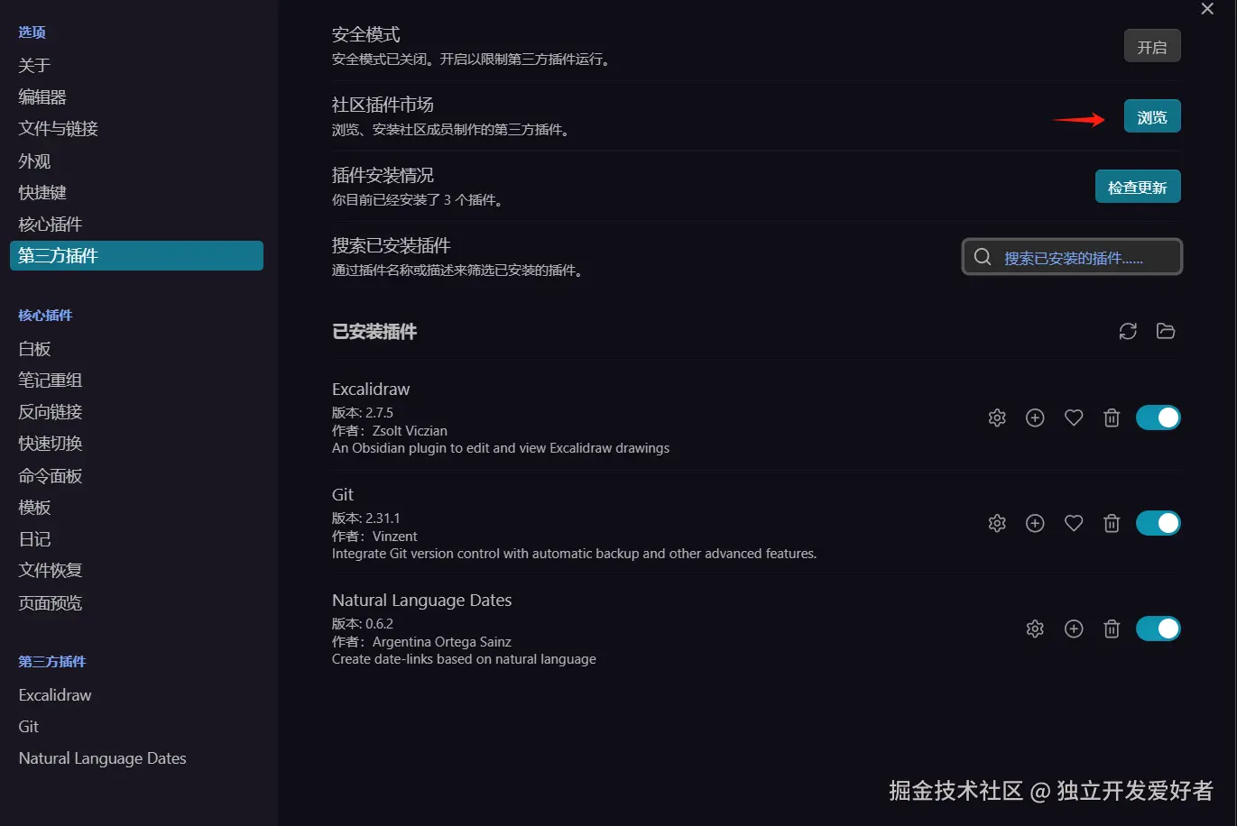 安装 Obsidian Git 插件