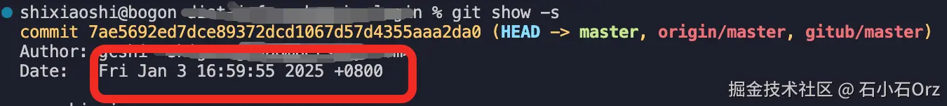 由于git show生成的时间是原始数据类型,我们可以将时间进行格式化,方便阅读。