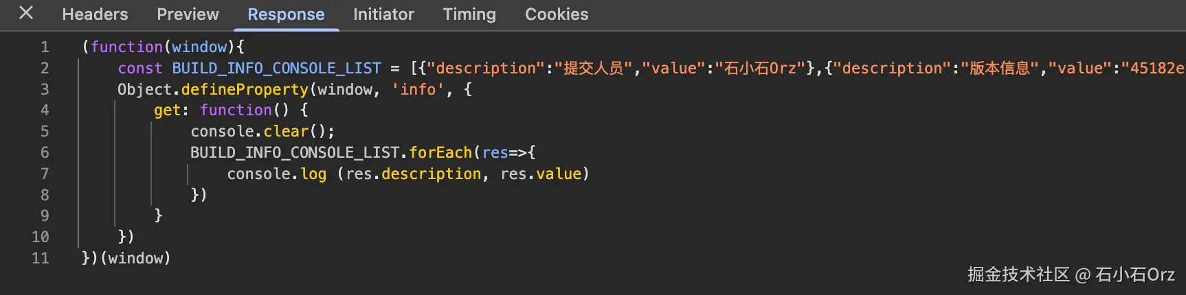 //获取js内容(内部包含git信息)