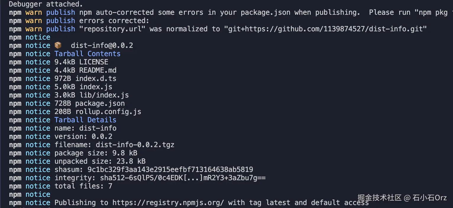 登录后,我们在Trae的控制台输入npm publish,出现下图的输出信息后即可发布成功。