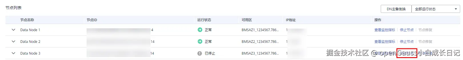 GaussDB支持在停止节点后,手动重新启动节点。
