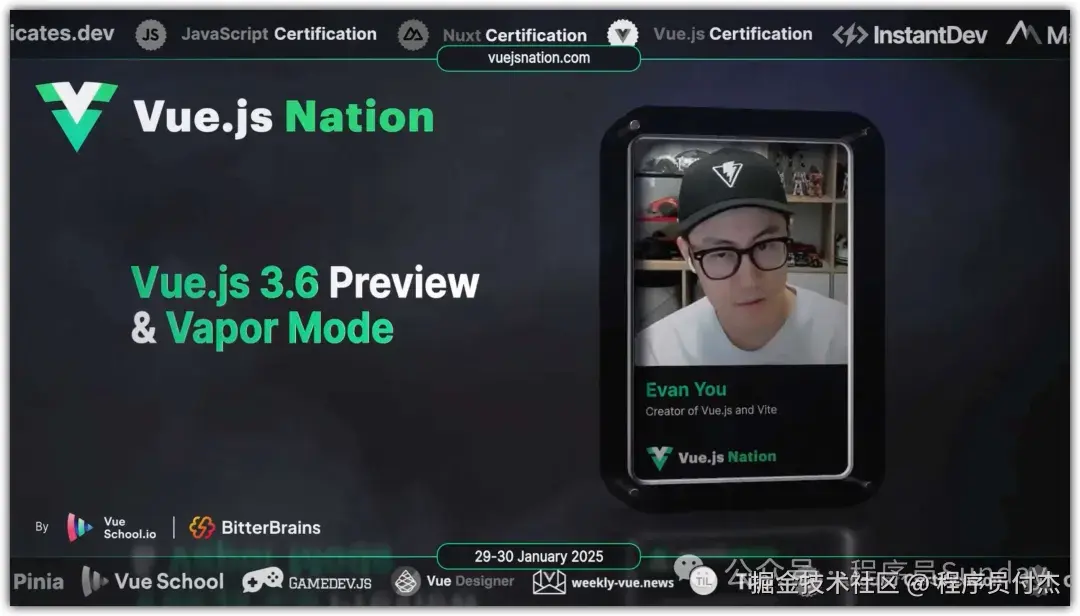 作全球规模领先的免费 Vue.js 线上盛会 ——Vue.js Nation 2025,于 1 月 29 - 30 日盛大开启,超 20,000 名开发者齐聚 “云端”,共探 Vue.js 及其生态的未来。
