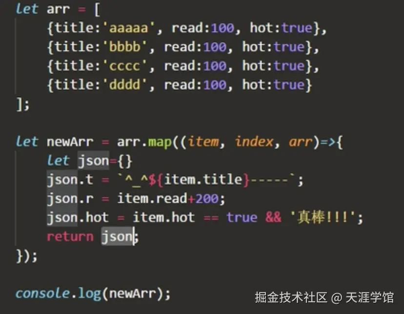 现在我们想将这些数据转换为一个新的数组,每个元素只包含学生姓名和是否及格(及格分数为 60 分),可以使用解构赋值结合map方法来实现: