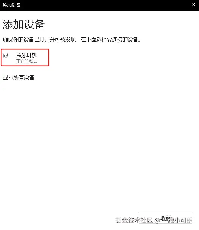 台式电脑连接蓝牙耳机第三步:与蓝牙耳机进行配对