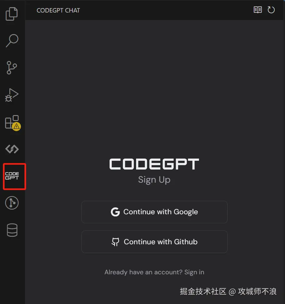 - 在 VSCode 中打开 CodeGPT,未登录的先登录;