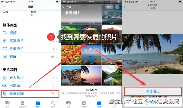 苹果手机照片恢复方法2:【最近删除】简单易找