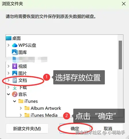 步骤3: 在弹窗中选择自己恢复文件的存放位置。