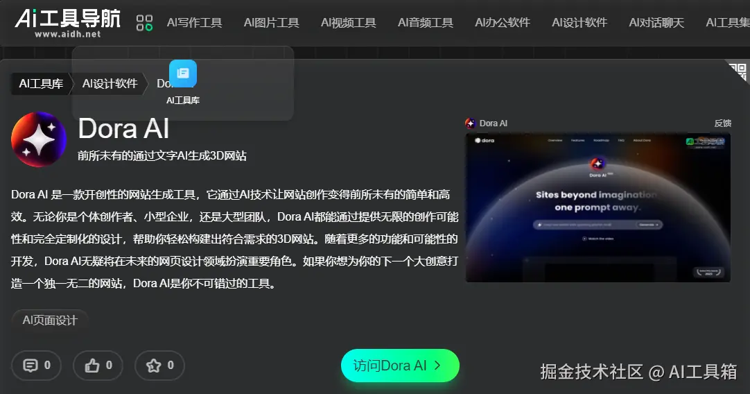 二、Dora AI:文字生成 3D 网站的创新者