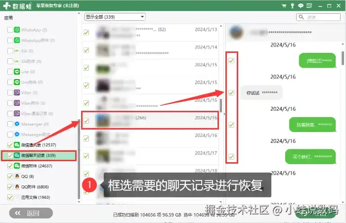 步骤3:扫描完成后,你可以在软件界面中预览到所有可恢复的聊天记录,选择你需要恢复的聊天记录进行恢复即可。