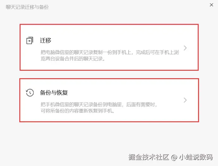 步骤2:选择 【备份与恢复】 选项,点击 【恢复聊天记录至手机】 ,并按照提示完成操作。