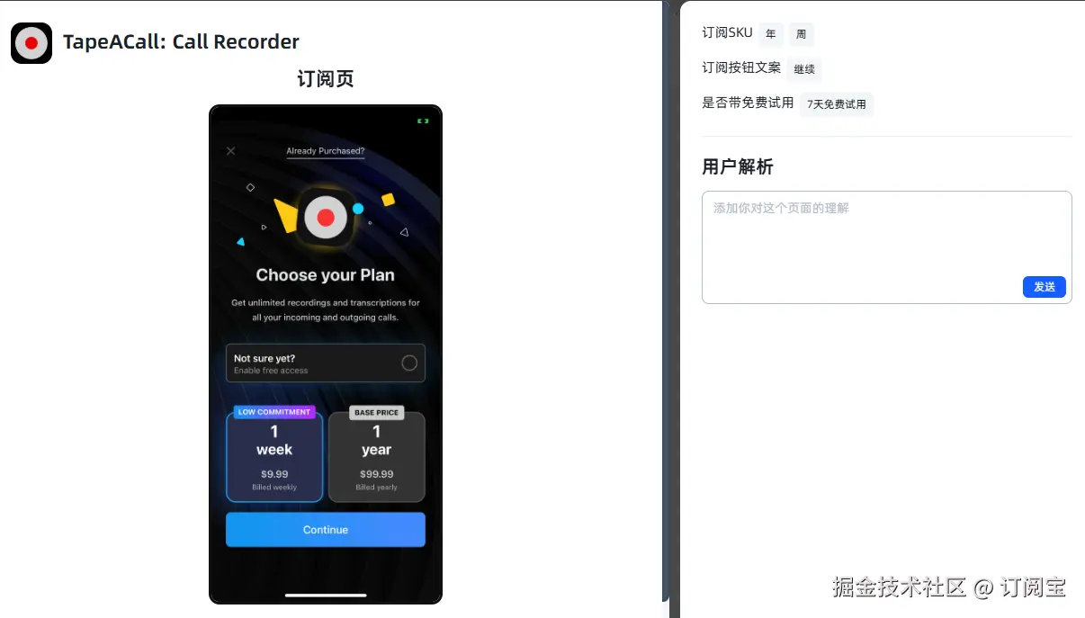通过订阅宝,开发者可以查看竞品的订阅页面布局、文案和视觉设计。