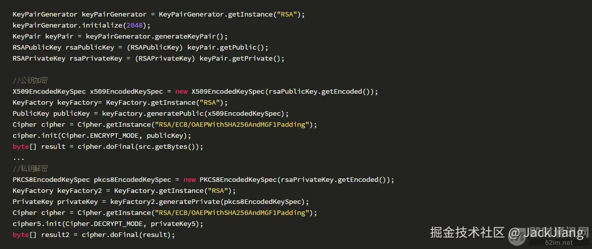 2、使用RSA算法做加密,RSA加密算法应使用Cipher.getInstance(RSA/ECB/OAEPWithSHA256AndMGF1Padding),否则会存在重放攻击的风险。 如: