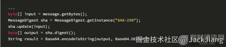 如使用SHA-256算法对message字符串做哈希: