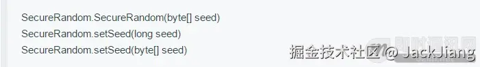 - 2) 在使用SecureRandom时候,不要设置种子。使用以下函数设置种子都是有风险的。