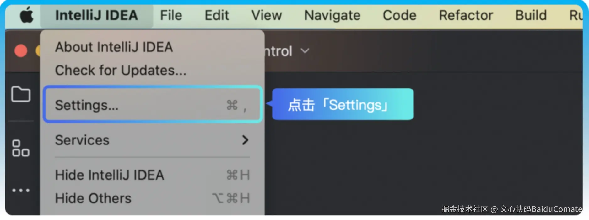 - 已安装 IntelliJ IDEA 的情况下(Mac 在菜单下点击设置,Windows在文件菜单下点击设置)