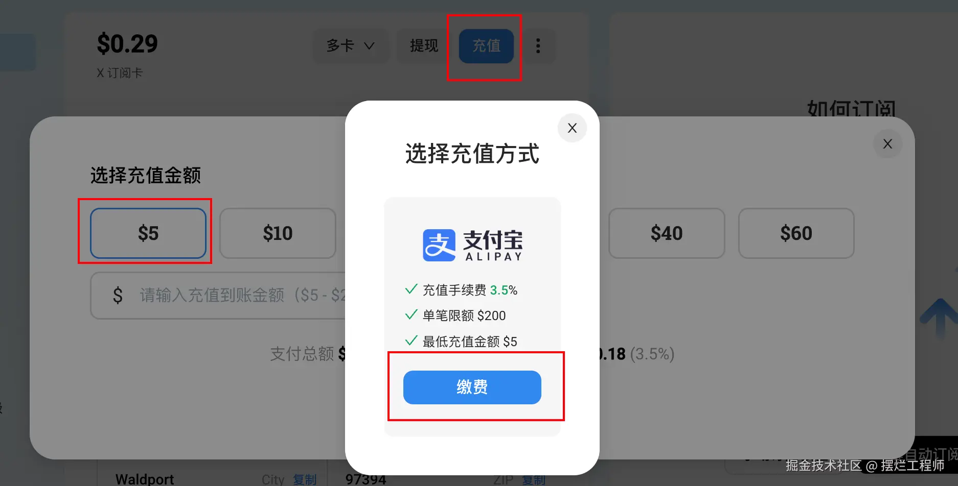 - 绑定卡,并充值最低 5 美元