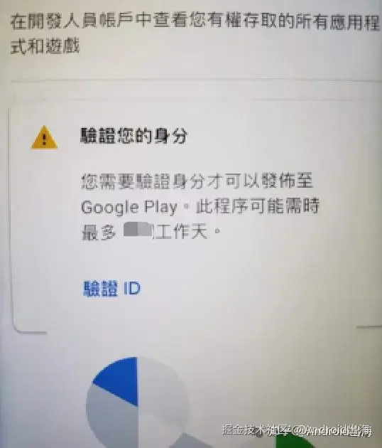 GP交流群大量开发者的反馈,在Google Play后台出现了需要验证身份的提示。内容大概是:必须按照规定填写内容,而且还需要等待谷歌方面的人工审核,只有审核通过的开发者才能正常分发应用。身份验证提示,如下图: