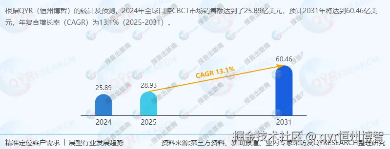 根据QYResearch最新调研报告显示,2024年全球口腔CBCT市场销售额达到了25.89亿美元,预计2031年将达到60.46亿美元,年复合增长率(CAGR)为13.1%(2025-2031)。