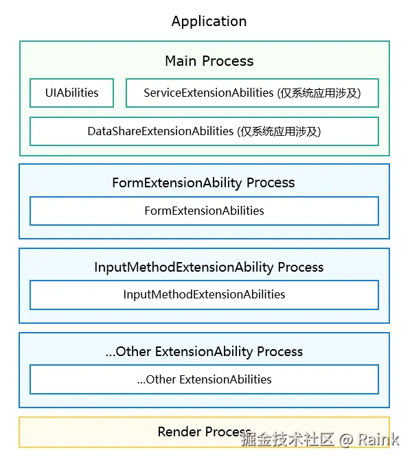 - 进程与线程模型:进程是系统资源分配基本单位,应用内UIAbility和ExtensionAbility通常运行在特定进程,系统提供进程间通信机制;线程是运算调度基本单位,Stage模型下有主线程、TaskPool、Worker线程,EventHub可用于线程内通信。
