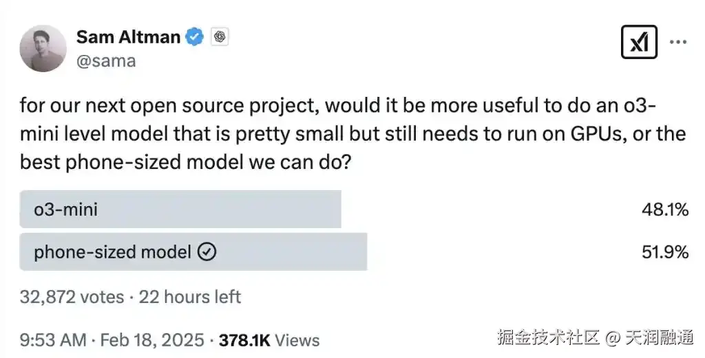 百度开源之后不久,OpenAI CEO山姆·奥特曼(Sam Altman)也在X平台上发起投票,询问网友下一个开源项目做什么比较好。这则消息透露出OpenAI也有意开源某个大模型项目。