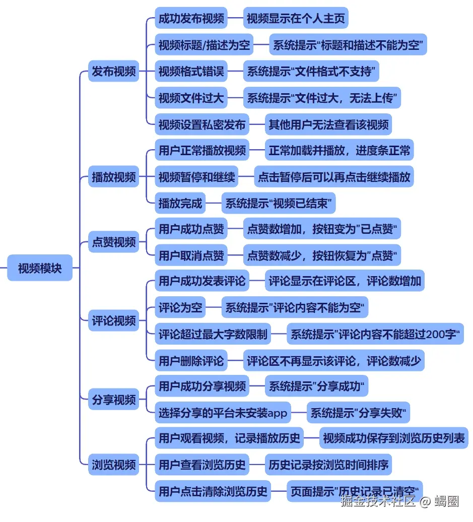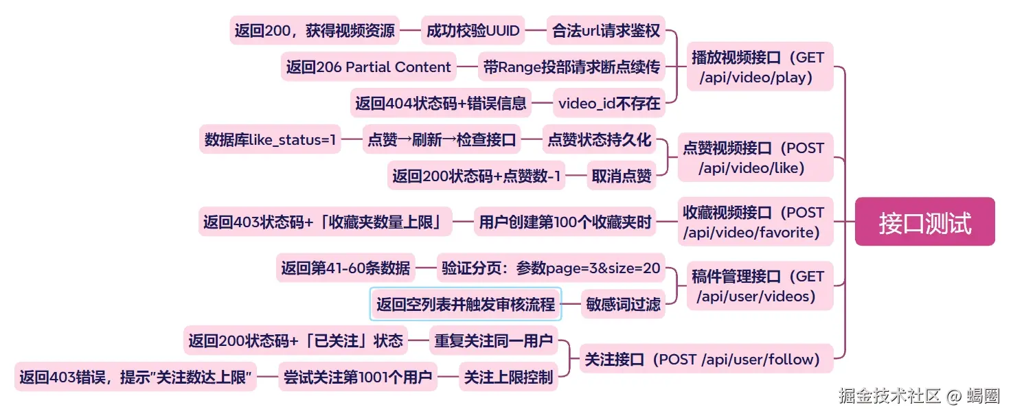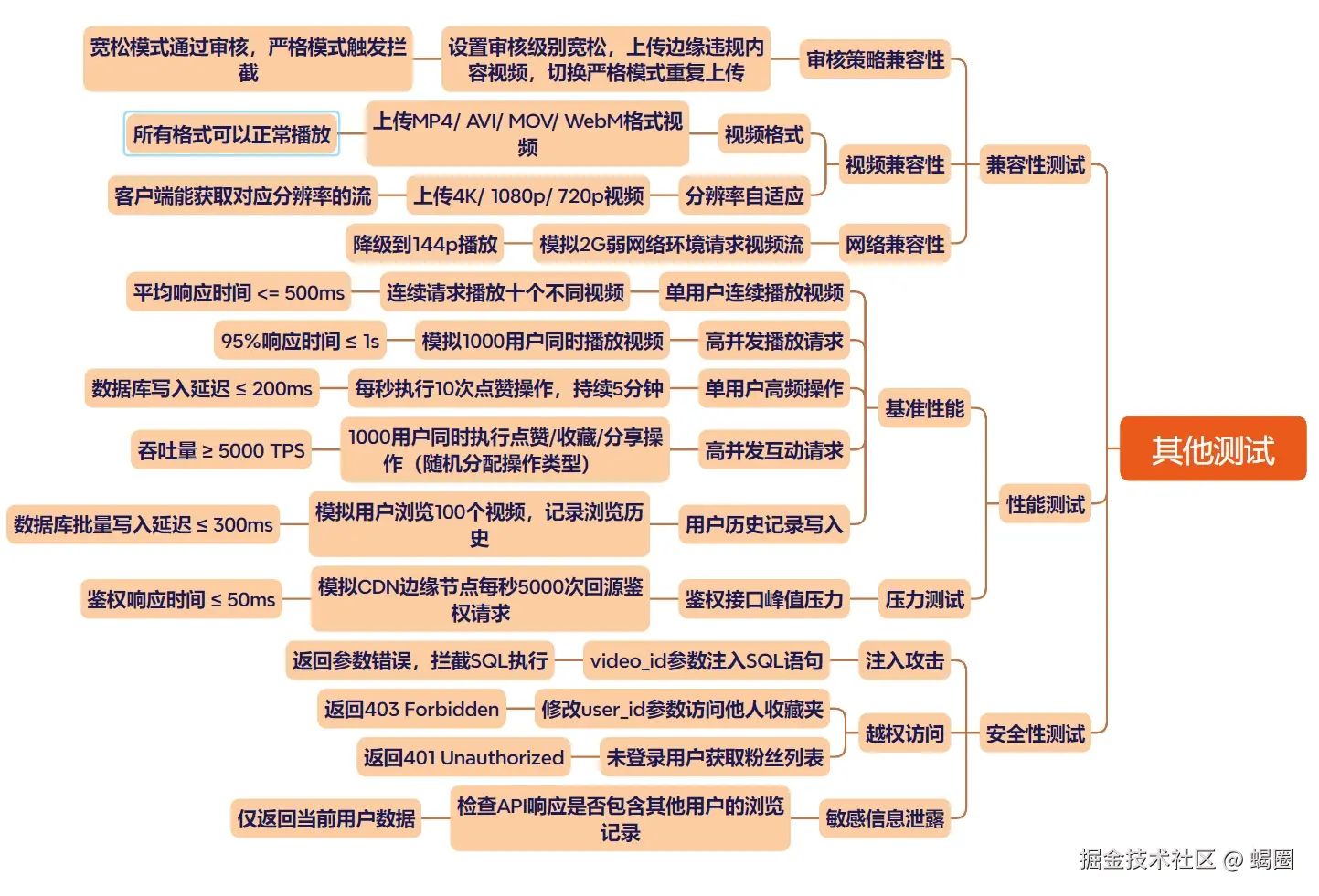 web短视频平台测试用例 蝎圈 2025-02-19 103 阅读1分钟 项目概述: 该项目是一款短视频平台,拥有热度排行榜,热门视频,兴趣推送,关注推送,内容审核等功能 功能测试: 用户注册登录: 用户信息: 视频模块: 推送模块: 接口测试: 兼容性、安全性及性能测试