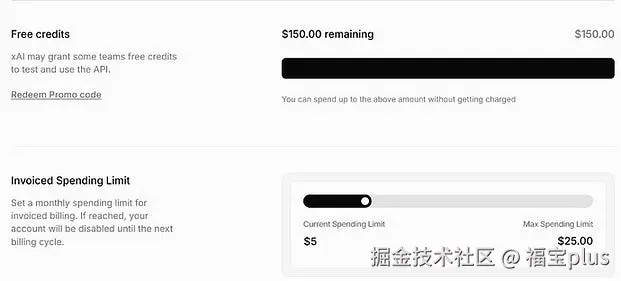 你也可以先白嫖一下 Grok API的福利,每月赠送 150 刀体验金,前提是要先给自己的API账号充值5刀。