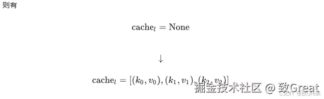 想一想,下图就是缓存的过程,假设我们第一次输入的输入长度是3个,我们第一次预测输出预测第4个字,那么由于下图给你看的是每个输入步骤的缓存,每个时序步骤都需要存储一次,而我们依旧会有些重复计算的情况。则有: