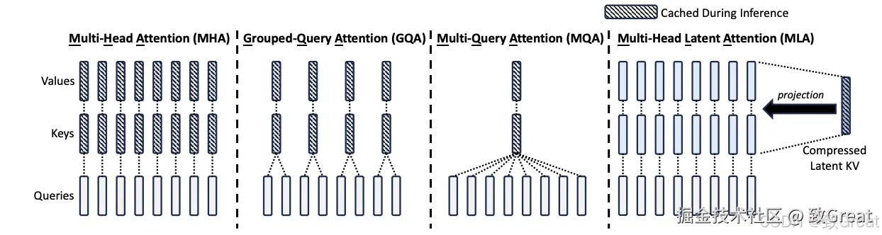 - 缓存与效果的极限拉扯:从MHA、MQA、GQA到MLA