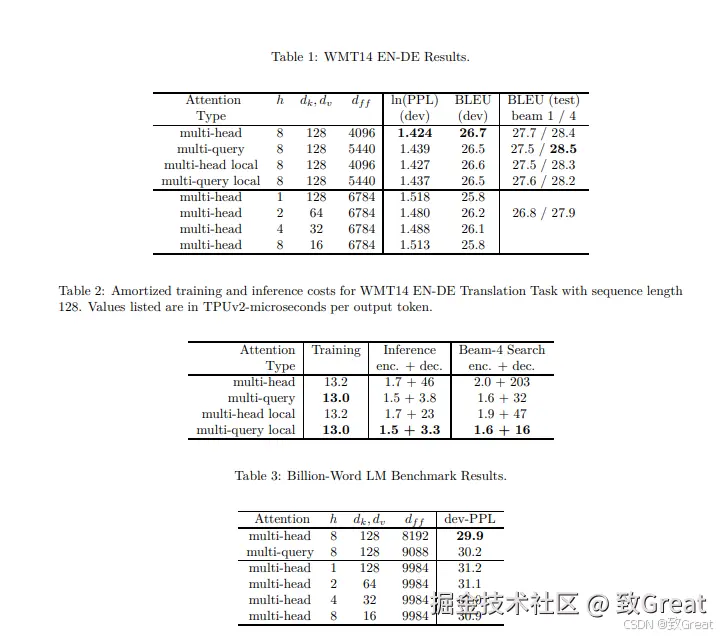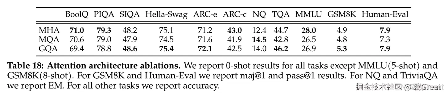 从上图我们可以看到,虽然MLA缓存的Latent KV比较短(相当于2.25个MQA的缓存量),但MLA有恢复全 k,v 的能力,特征表达能力显著比GQA、MQA要强。所以MLA能做到又快又省又强。论文中也给出了下图的数据