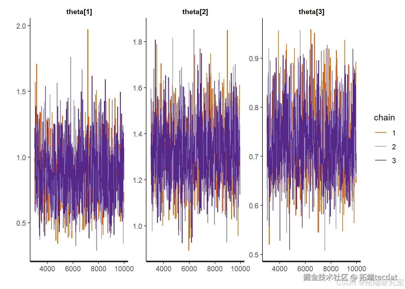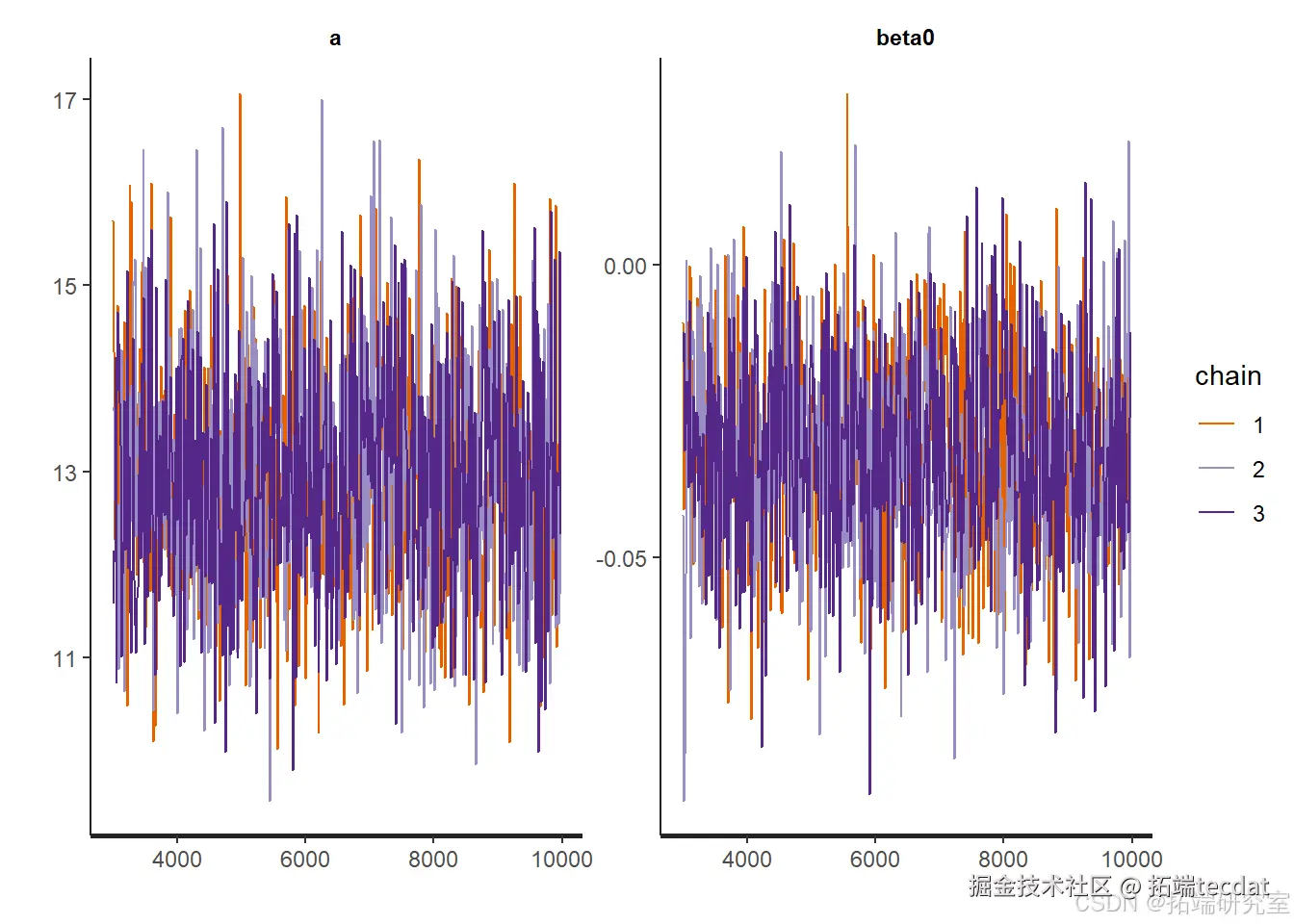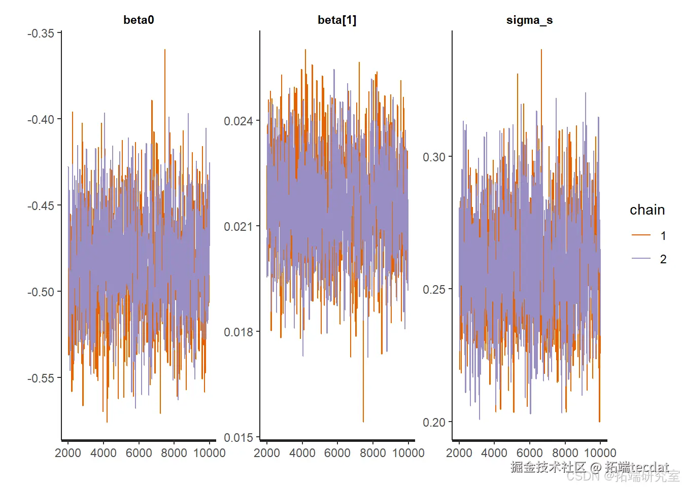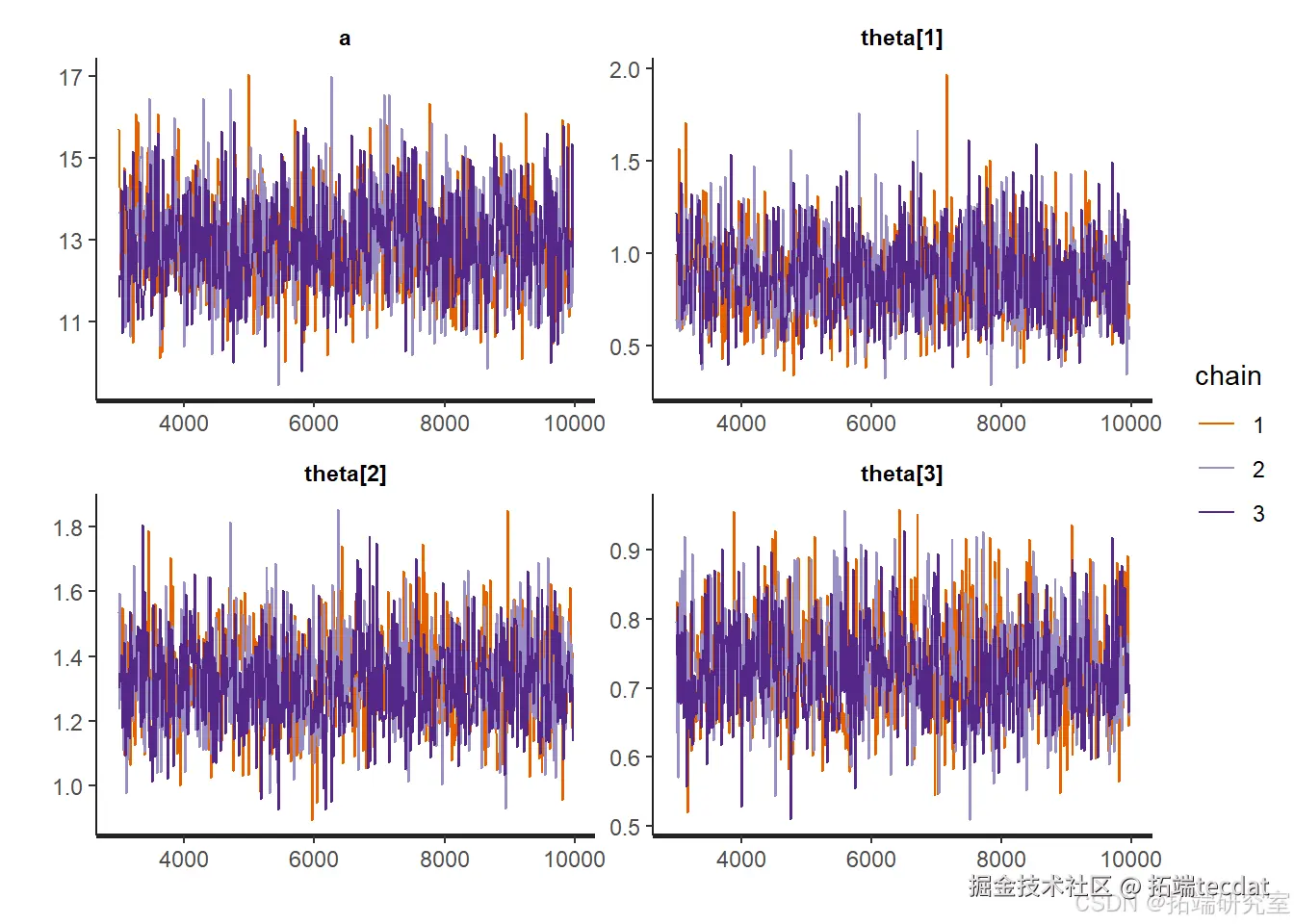 部分参数后验样本的跟踪图: