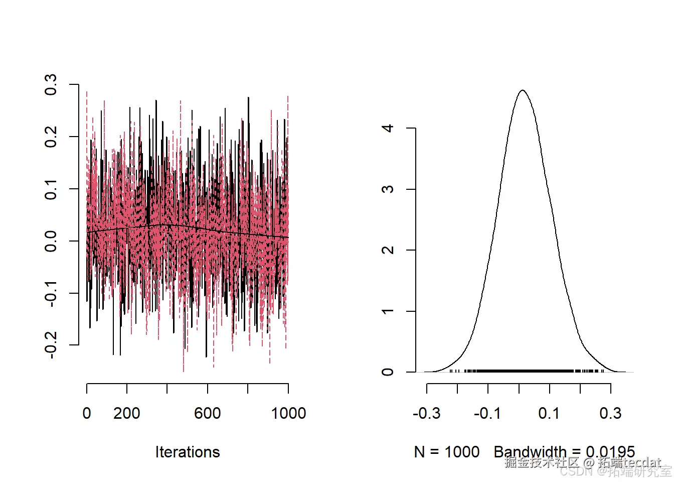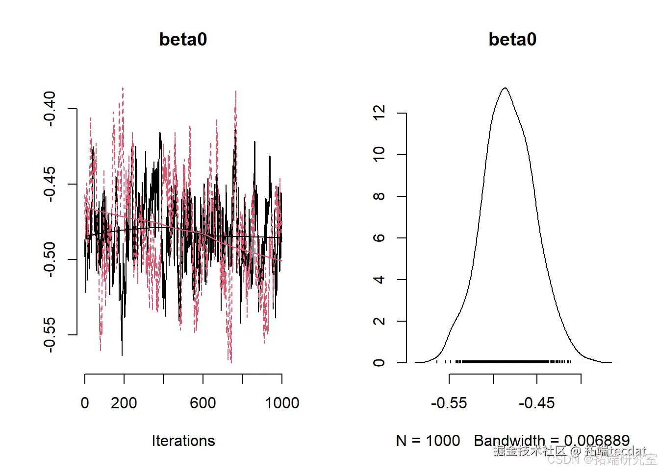 检查一些参数的轨迹图、有效样本量,并获取一些参数的后验摘要: