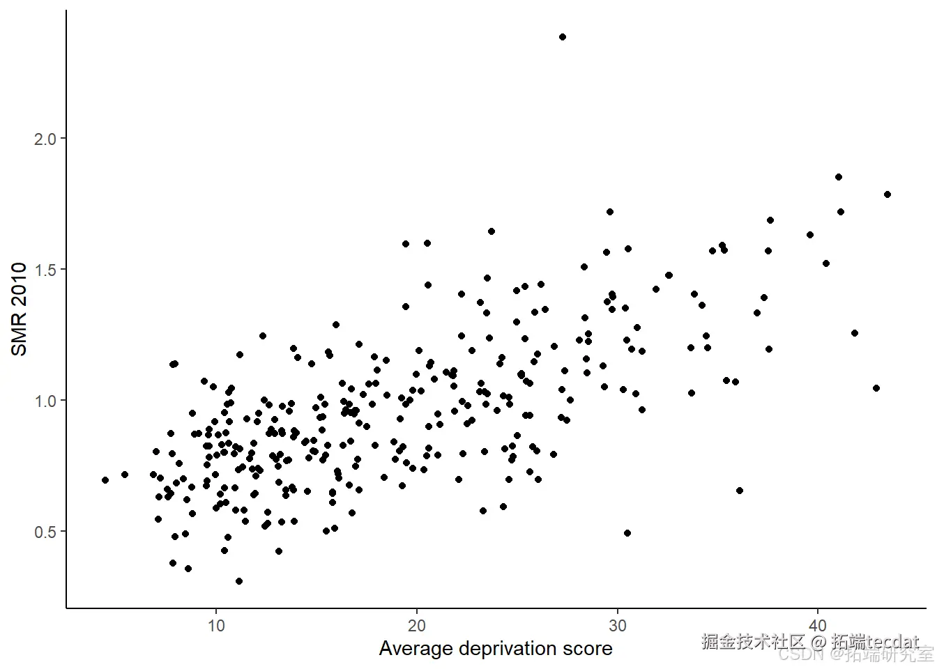 # 绘制平均剥夺分数与2010年SMR的散点图