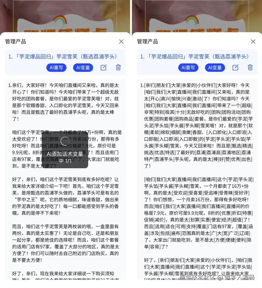 青否数字人话术接入deepdeek大模型实现AI自动写话术,AI话术实时改写变量,实现每一条话术输出的不同以及改写的话术更加贴合直播间的产品,用来保障话术输出的稳定性!(直播:zhibo175)