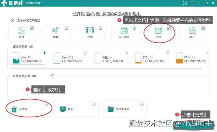 使用数据 蛙恢复专家进行回收站数据恢复的具体步骤如下: