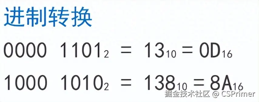 我们首先会看加法器,因为16正好是2的4次方,所以计算机中通常使用16进制来简化二进制的写法,我们看二进制十六进制跟十进制是怎么转换的,比如下面十进制的13怎么转换成二进制,书本里面转换方式比较正规,可能不太好理解,不知道你们老师有没有讲过1种8,4,2,1的方法,