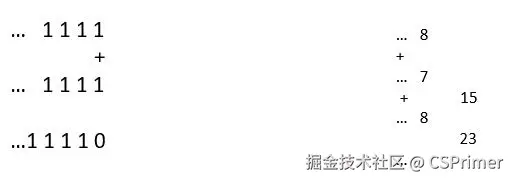 我们看实际的二进制加法,它某一位的两个数相加,还要考虑上一位的进位,比如下面的1+0还要考虑上一位的进位1,那么就是1+0+1结果是0再进位,像上面没考虑进位的加法器就属于半加器。