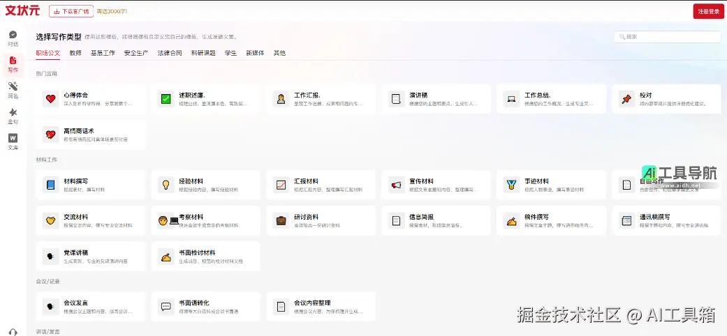 打工人都明白,公文写作耗时费力又要求严谨。AI助手才能解忧,无需到处寻找,AI 工具导航