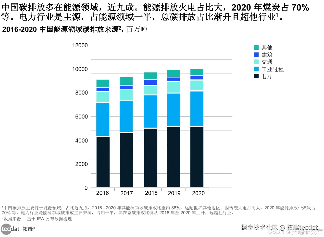 能源领域主导中国碳排放,近九成。火电比重高致能源排放突出,如 2020 年煤炭 70%。电力行业居能源排放之首,总占比上升,远超同行。