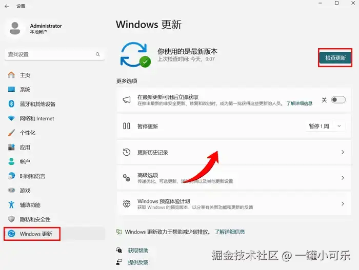 操作步骤是用户进入系统设置中,点击【更新和安全】选项,单击【检查更新】,然后重启电脑即可。