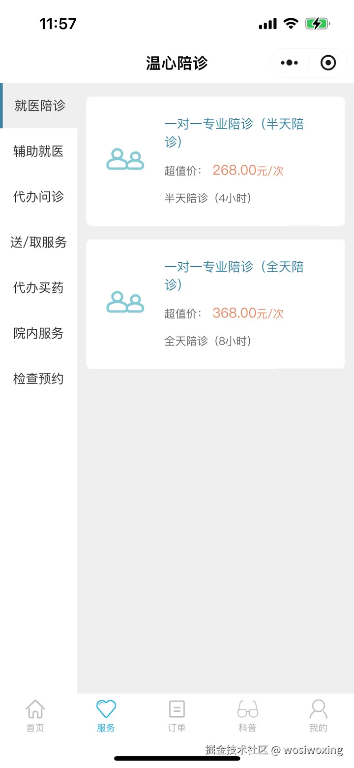 | 服务列表页 | 选择服务 | |