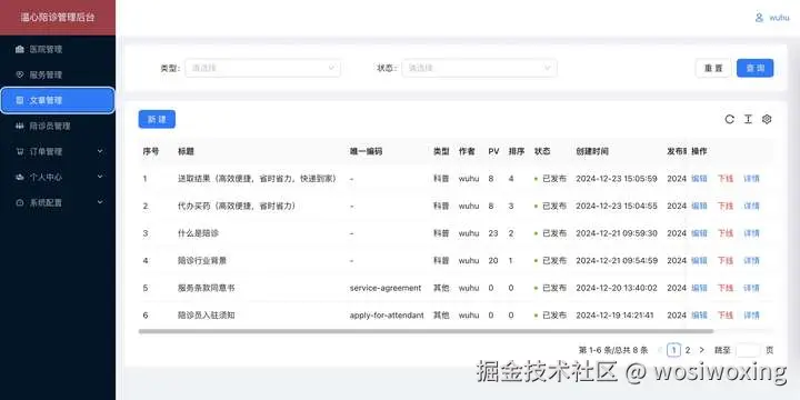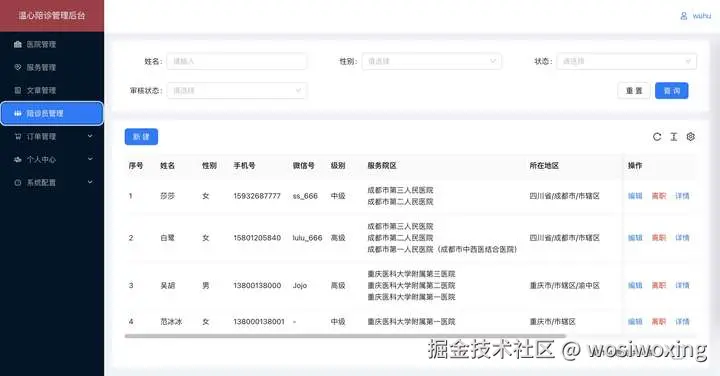 | 陪诊员管理 | 新增/编辑/在职/离职/审核/详情; | |