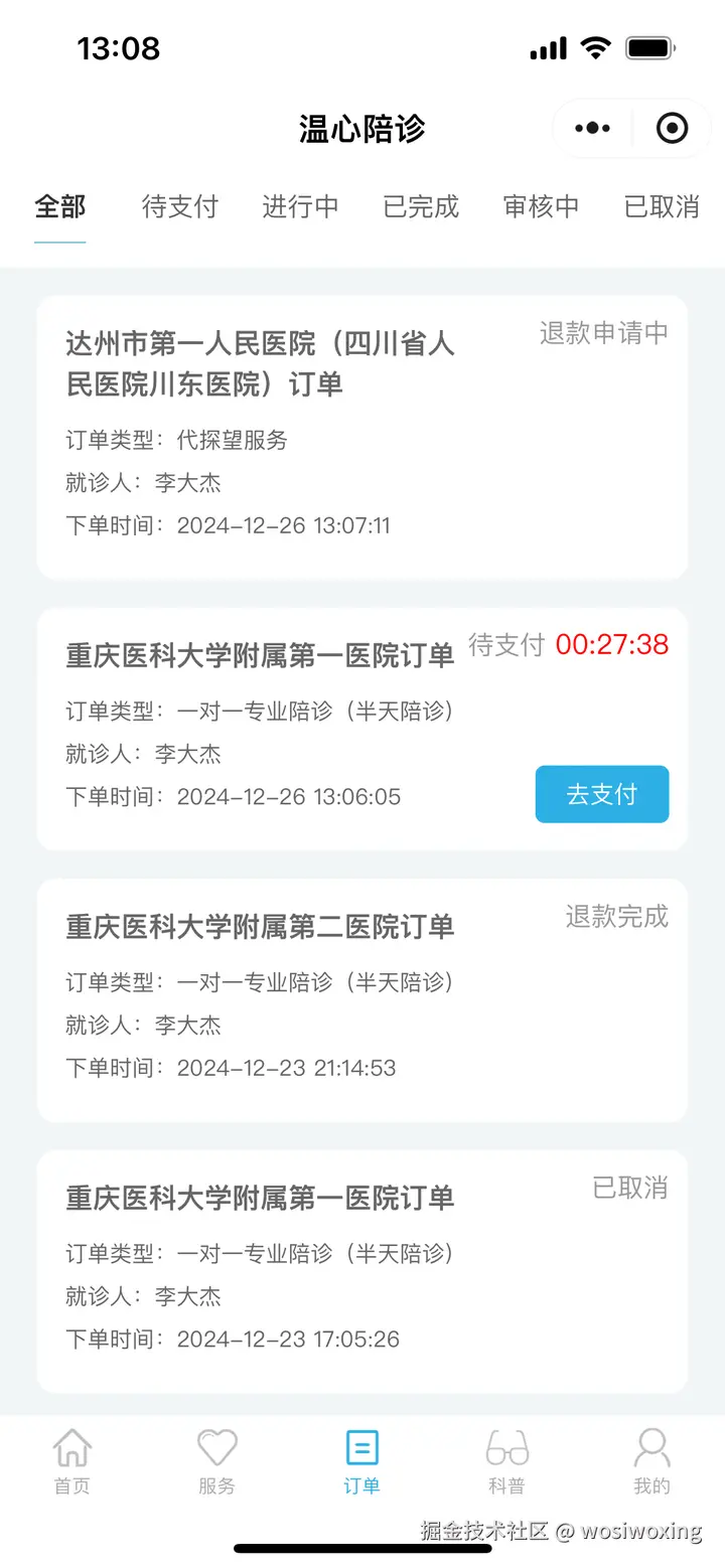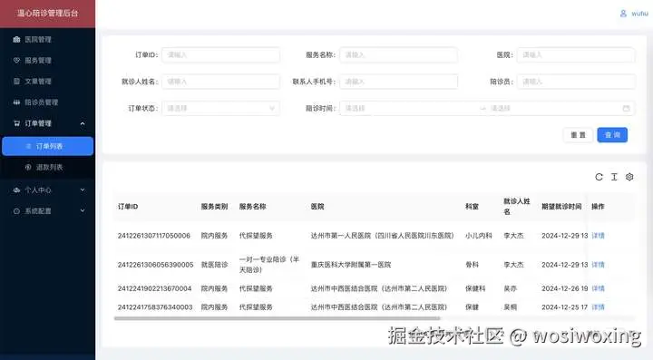| 订单管理 | 列表/详情/分配陪诊员; | |