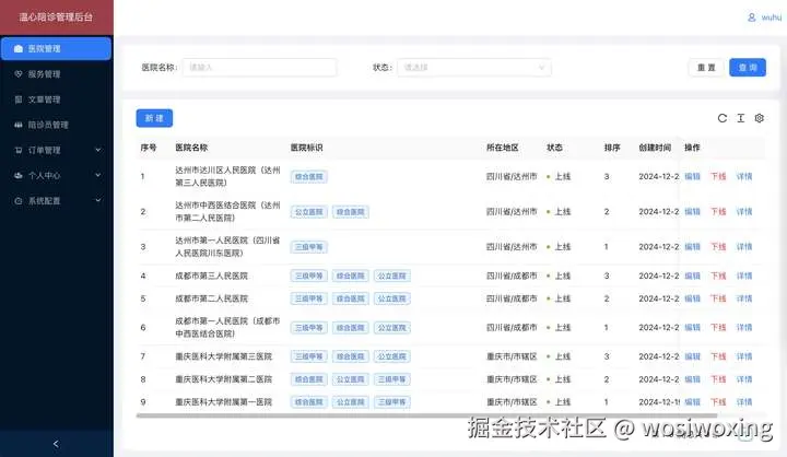 | 医院管理 | 新增/编辑/上线/下线/详情; | |