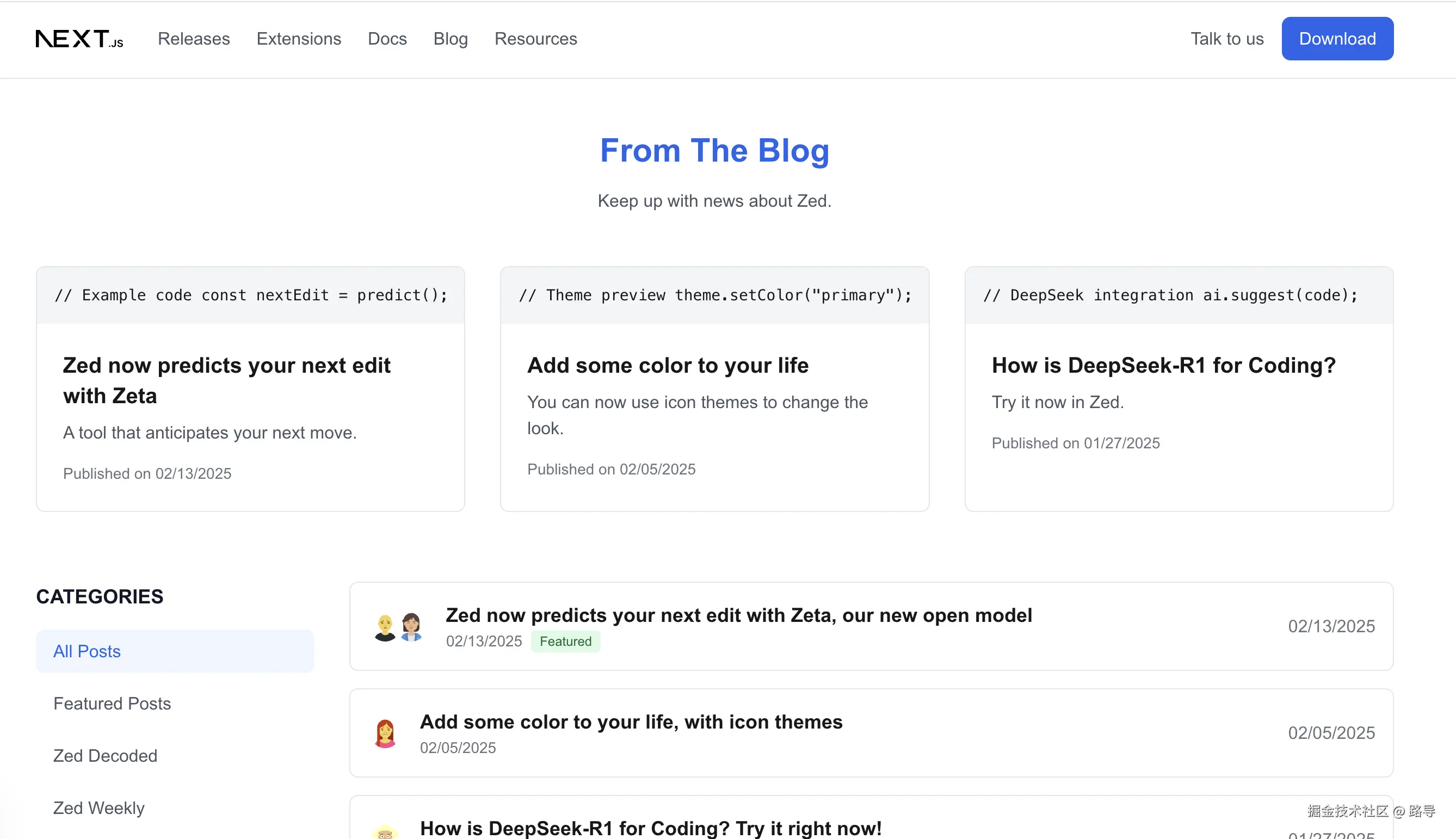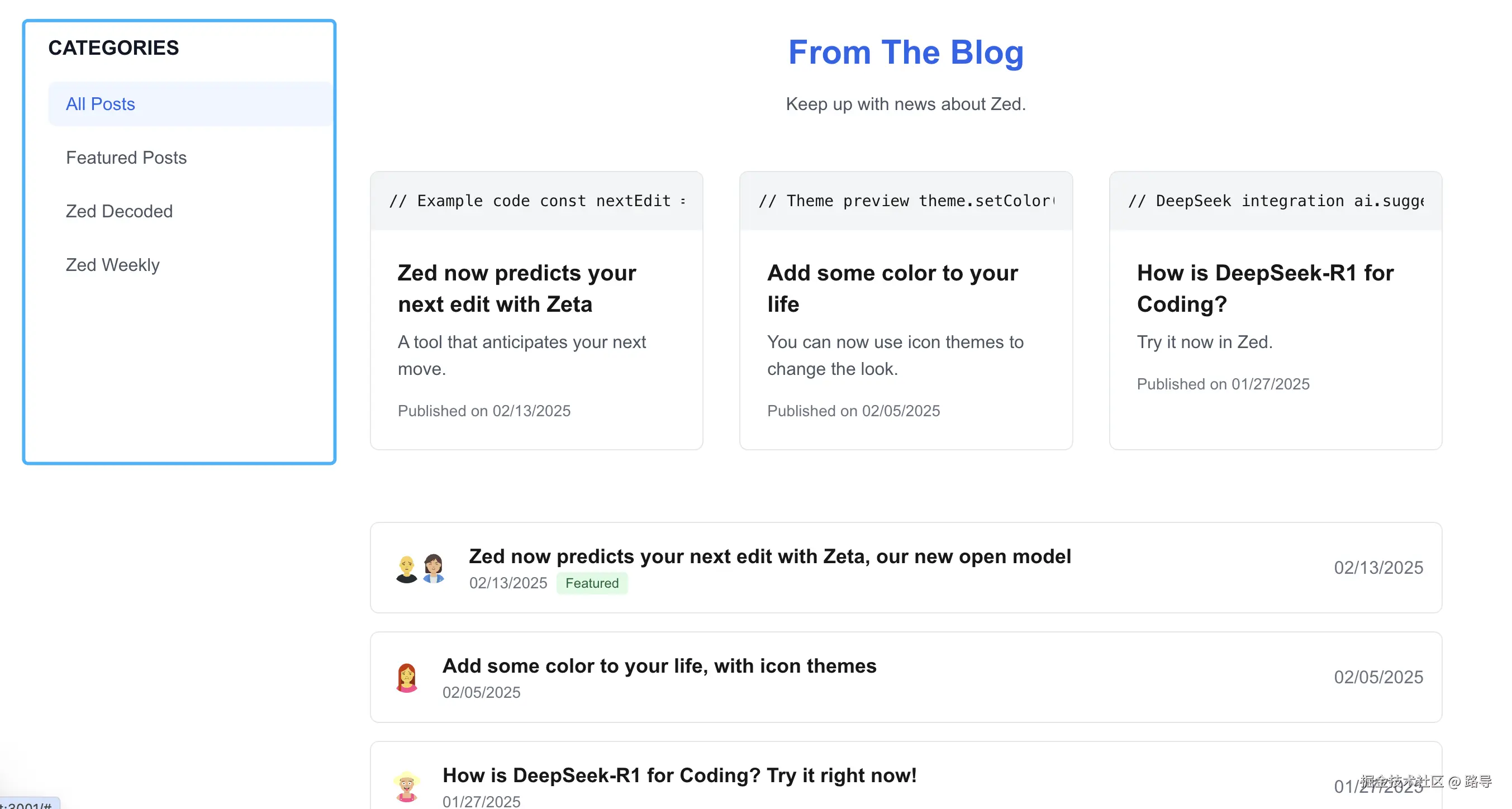 被复制的网站地址:zed.dev/blog 我用AI做出来的网址:zenblog-zpit.vercel.app/