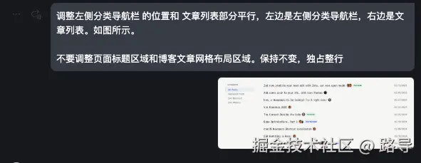 采用 Builder 模式,上传截图,输入提示词:复制图片效果,实现一个 nextjs 博客网站