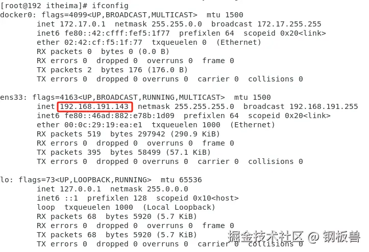 ifconfig如下图所示,即为虚拟机ip