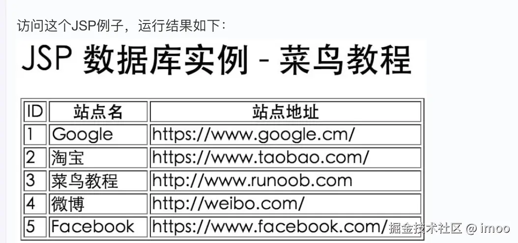 <h1>JSP 数据库实例 - 菜鸟教程</h1>