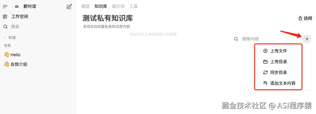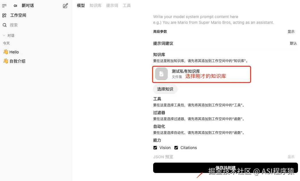 知识库创建好了后,接下来请参考下图为知识库配置模型