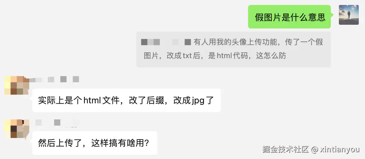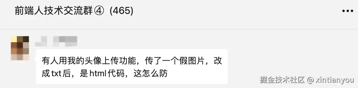 这里说个题外话,该“用户”(攻击者)的行为,往小了说,导致网站头像显示功能异常。往大了说,可能是想利用网站潜在的漏洞进行攻击,例如通过某种方法执行这个html文件,从而执行里面的js文件,这就是典型的XSS(跨站脚本攻击),对于可实施性这里暂且不谈。